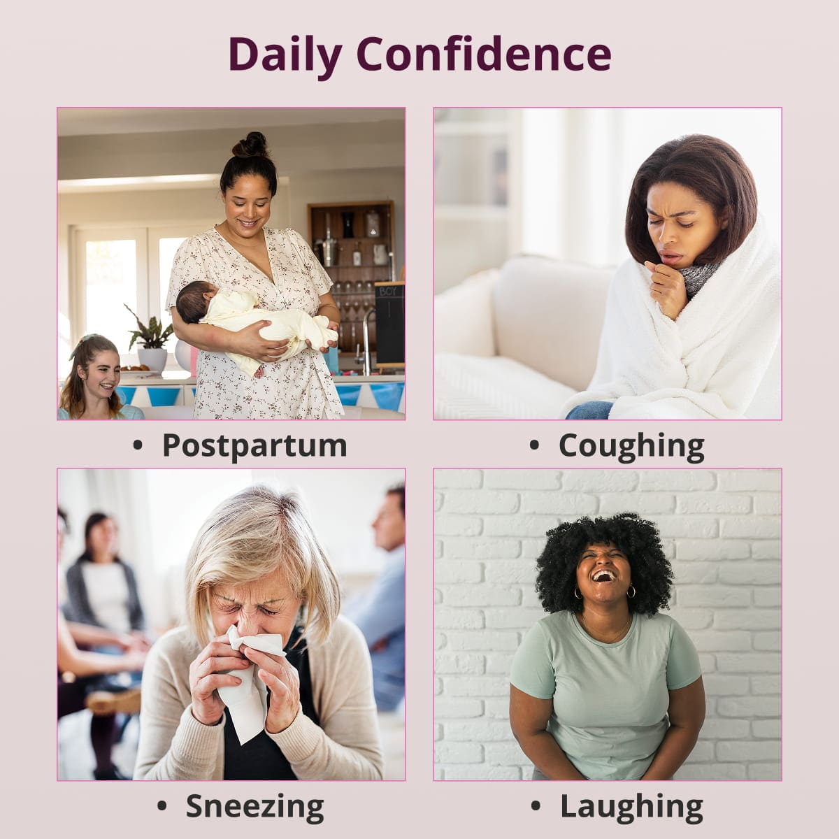 Women of all ages who experience light to moderate bladder leaks from stress, movement, postpartum recovery, menopause, or everyday activity.
