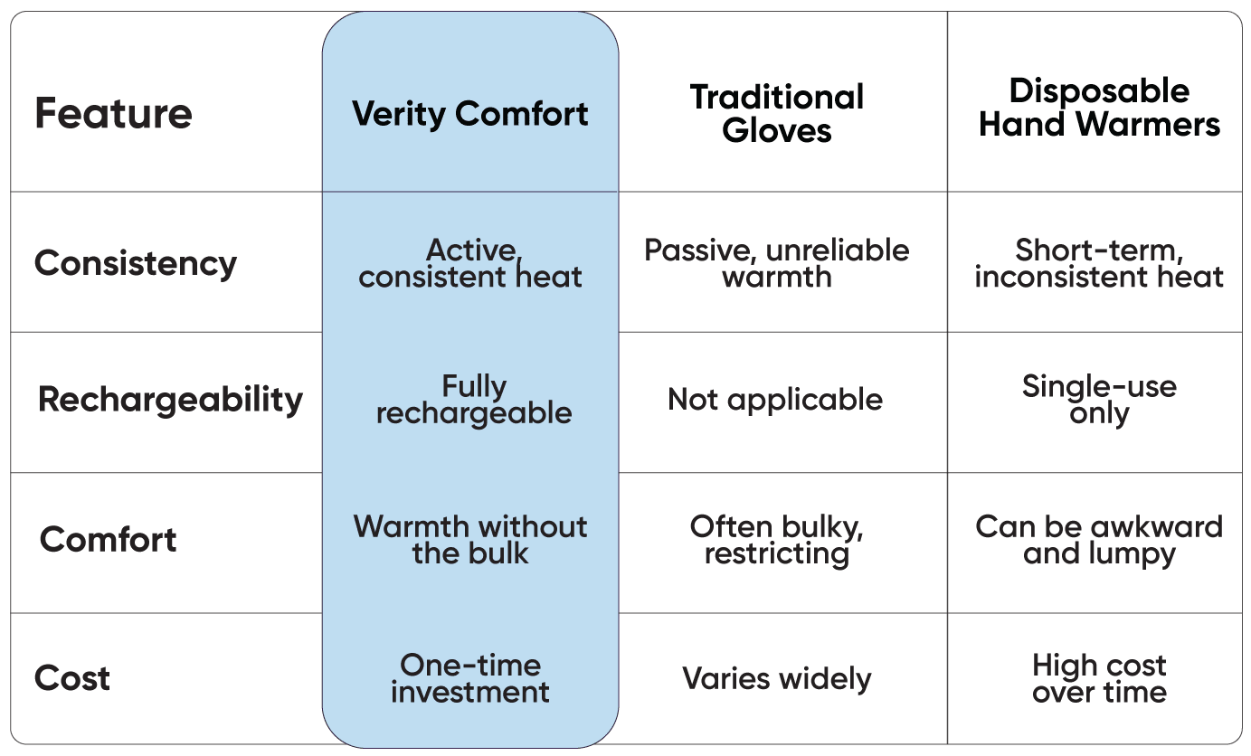 Verity Comfort heated gloves are designed to be your trusted partner for staying active and independent, providing reliable warmth that just works.