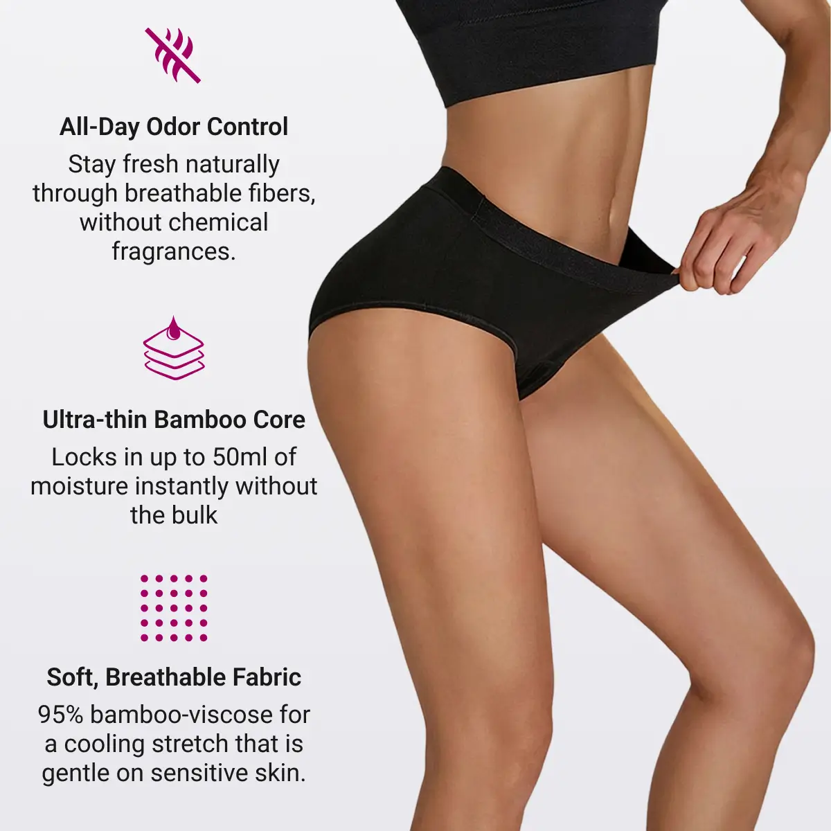 Sorae feels like your favorite everyday underwear—only smarter. The bamboo-viscose fabric is exceptionally soft and gentle on sensitive skin, making it ideal for all-day wear.